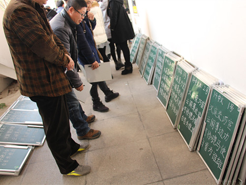 本次考核内容按照《welcome888集团教师职业技能考核管理办法(试行)》(以下简称《考核办法》)要求,根据专业不同分为粉笔字和钢笔字的现场书写。小教、中文、数学、音乐学等专业进行粉笔字和钢笔字的考核,学前教育专业根据幼儿园教育教学特点,只进行钢笔字的考核。考核过程中,同学们态度认真,用心书写每一个汉字。考核作品或遒劲有力,或清秀隽永,展现了我们师范学子较高的书写技能,但仍有小部分学生在书写技能方面尚有欠缺。