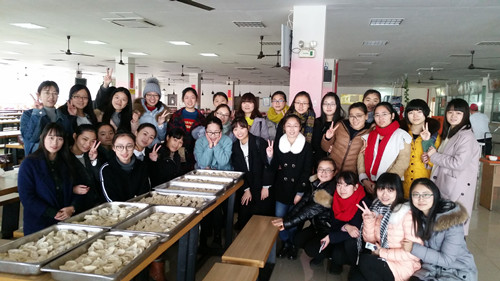 传统佳节冬至将至,为了感谢这一年来各位教师、教学楼管理员及宿管阿姨大伯们的照顾,2015年12月21日下午一点14学前本(2)班全体31位同学在食堂一楼开展冬至包饺子活动,随后将饺子送给各位学校职工们表达对其的节日祝福。