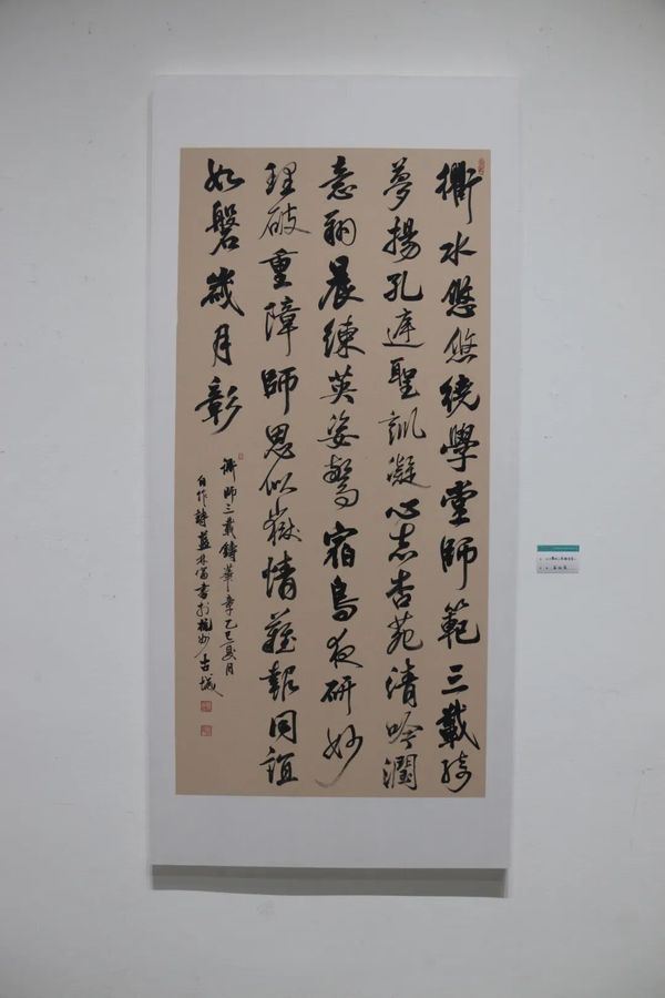 我们吴锡标教授的行书作品《衢师印记与展望》,以酣畅淋漓的笔墨抒发了衢师情愫;蓝林富的行书作品《衢师三载铸华章》将对“衢师三载”师友情谊、治学岁月的情感融入笔墨,行书的潇洒气质与诗歌的人文内涵相得益彰;《衢师赋》行书作品,书者徐荣伟以灵动洒脱的行书笔意,勾勒出衢师百载薪传的厚重脉络。这些笔墨之作将衢师岁月凝于纸间,既是校友心声的真挚表达,亦是师范文化传承的生动注脚。